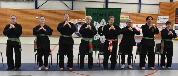 En 1994, le Patriarche des écoles Thanh Long, Lao Su Nguyen Dai Viet, remettait à son fils Michel, la ceinture de Maître fondateur du Thanh Long Son Hai Phai. 30 ans après, à son tour, Maître Dan Hung, a remis à ses enfants : Jérémy, Michael et Victoria, et à son épouse Corinne, la ceinture verte et rouge, réservée aux membres de la famille Nguyen. Après cette cérémonie, plusieurs ateliers ont été proposés à la centaine de pratiquants : Techniques à mains nues, supervisées par Jérémie. Les song dao (couteaux papillons), dirigés par Michael. Les enfants étaient sous la houlette de Victoria. Tandis que Corinne transmettait les fondamentaux du quyen de Bâton : Tieu hoa thuong. Une journée riche en évènements qui laisse présager une transmission tout en douceur. Néanmoins, Maître Michel dispense toujours son enseignement.