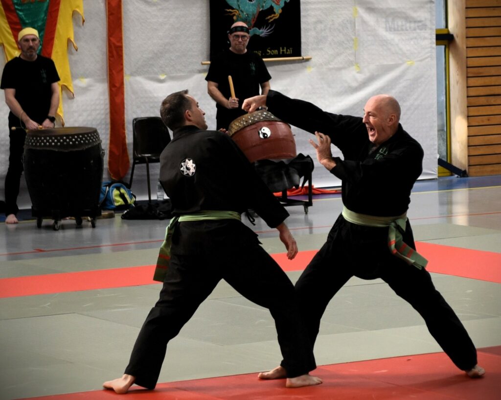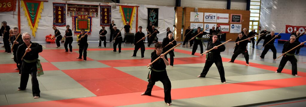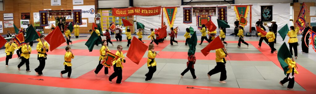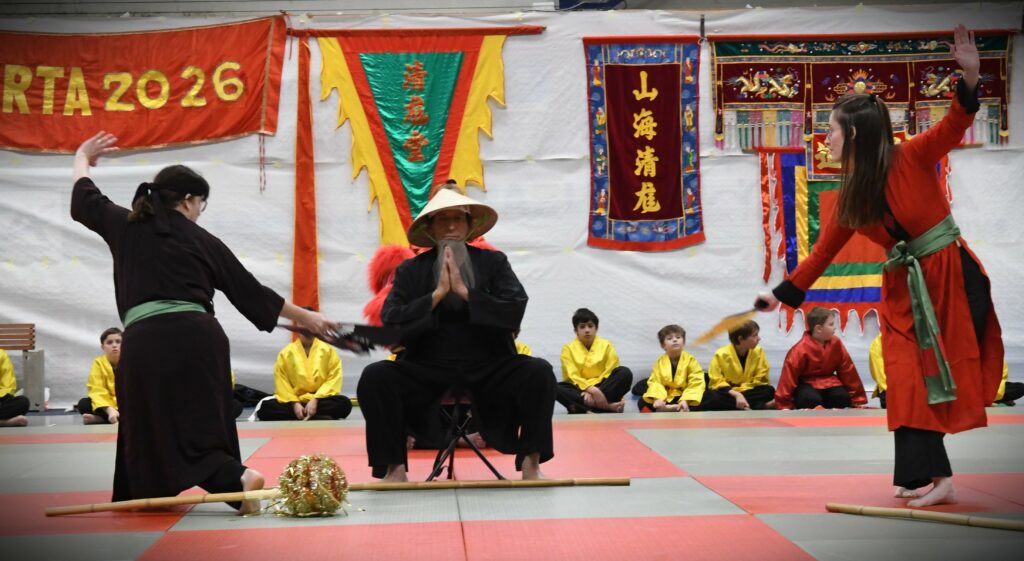 Le 08 mars 2026, le RTA a tenu toutes ses promesses : pour la danse du dragon inaugurale, le Maître a demandé à sa famille de rendre un hommage à Floréal, en ouvrant le spectacle. Tour à tour, la centaine de pratiquants est venue nourrir ce gala. Les enfants ont su captiver le regard de leurs parents, par leur concentration. Pour la première fois, Maître dan Hung a demandé au groupe de mélanger les différents niveaux de ceintures, le résultat a été bluffant. Entre chaque exercice, des casses spectaculaires ainsi que des deux par deux ont scandé et ponctué les deux heures de spectacle. Avant le très attendu pot de l’amitié, offert à tous, des remises de médailles ont eu lieu. Monsieur Baños Floréal a été élevé au grade de 8 ème dang, à titre posthume, et notre Maître a reçu la médaille d’argent de la jeunesse et des sports. Unité, harmonie, tradition et respect ont été les valeurs mises en lumière ce jour.